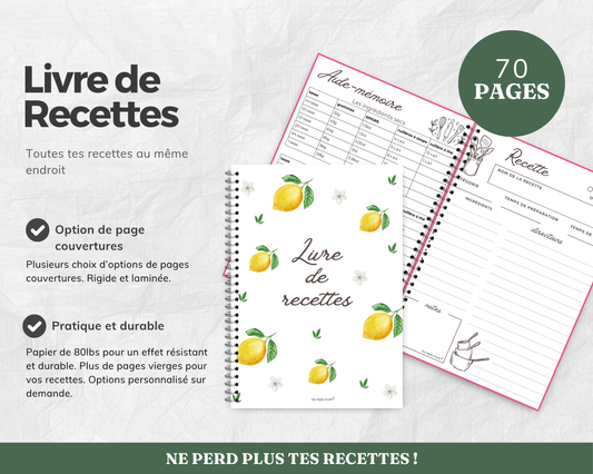 Livre de Recettes Citron – 70 Pages Recto Verso, Espace Notes & Aide-Mémoire, Cahier de Cuisine Pratique, Cadeau GourmandRegular price $26.99 CADRegular priceUnit price / per-