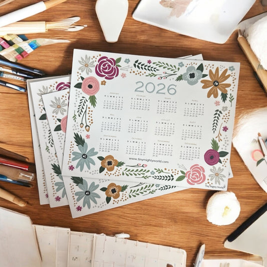 Calendrier de bureau 2026 avec imprimés floraux mensuels – Format compact sur pied