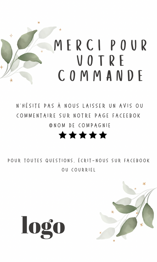 Carte de remerciement 3x5 pouces