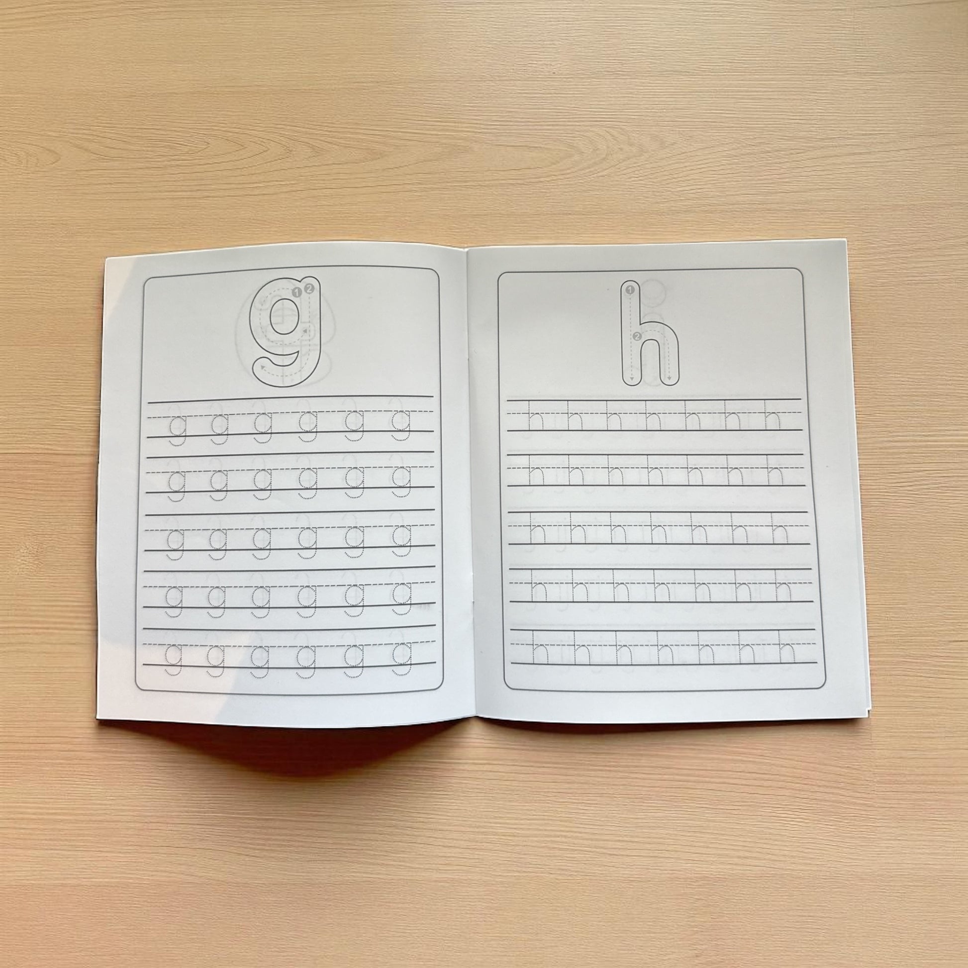 Chaque page propose des lettres en pointillés à suivre, permettant aux enfants de s’exercer à tracer correctement les majuscules et les minuscules. Compact et facile à glisser dans un sac à dos, ce cahier d’exercices est idéal à la maison, à l’école ou en voyage.