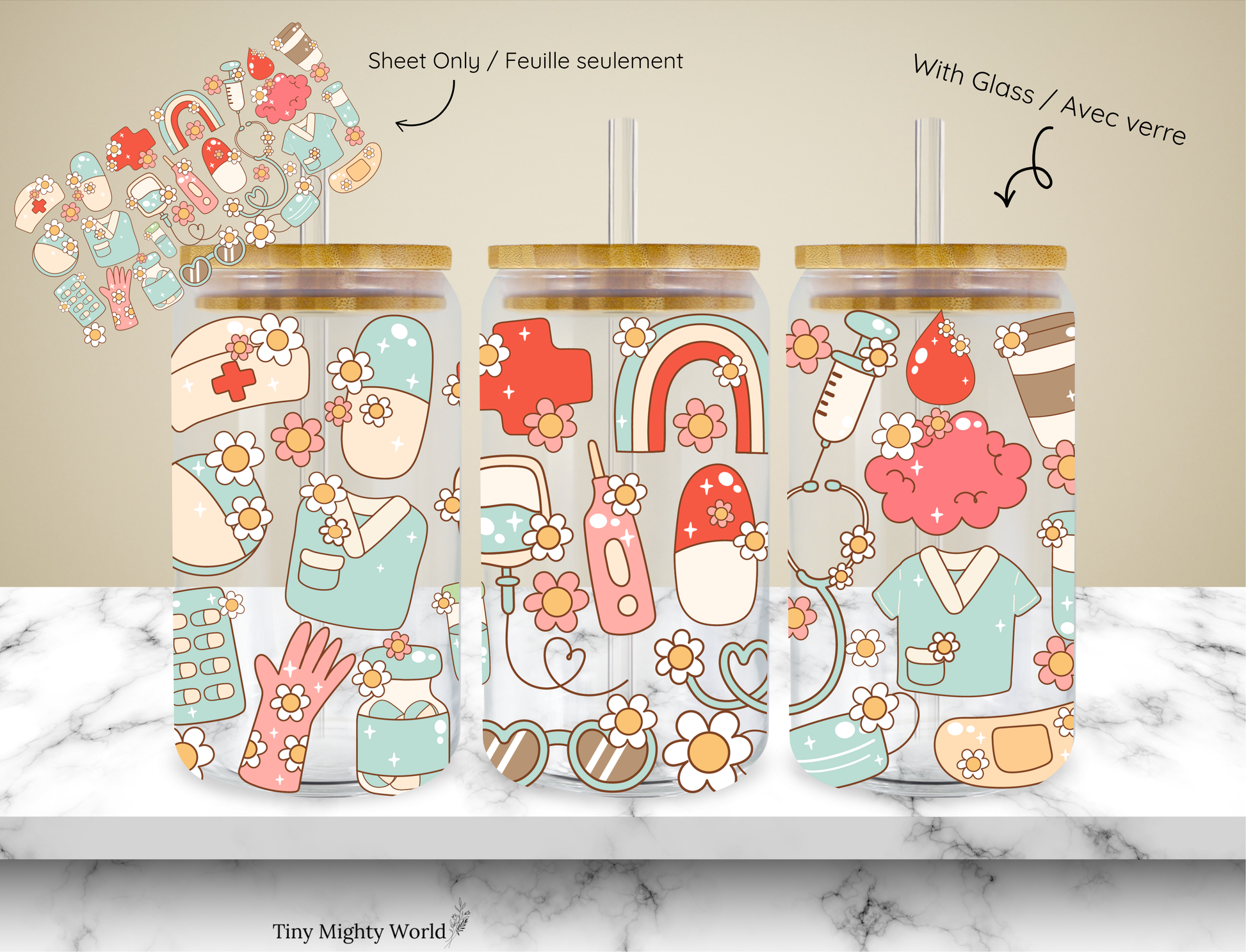 Donnez à vos tasses en verre un design impeccable et durable avec nos emballages de tasses adhésifs UV-DTF, parfaitement dimensionnés pour les canettes en verre Libbey de 16 oz.