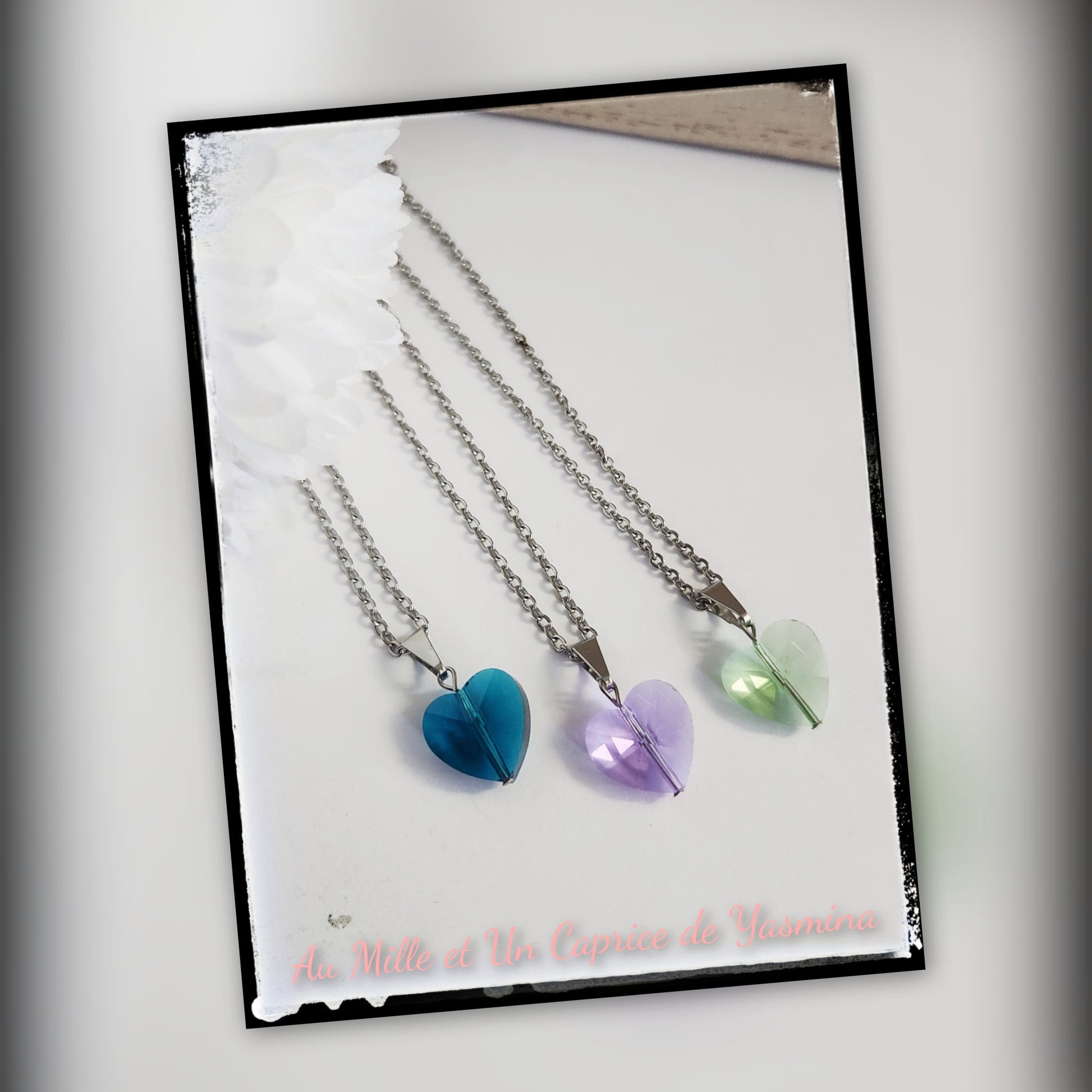 Chaîne avec pendentif ''Coeur'' en cristal et acier inoxydable 18 pouces avec rallonge.