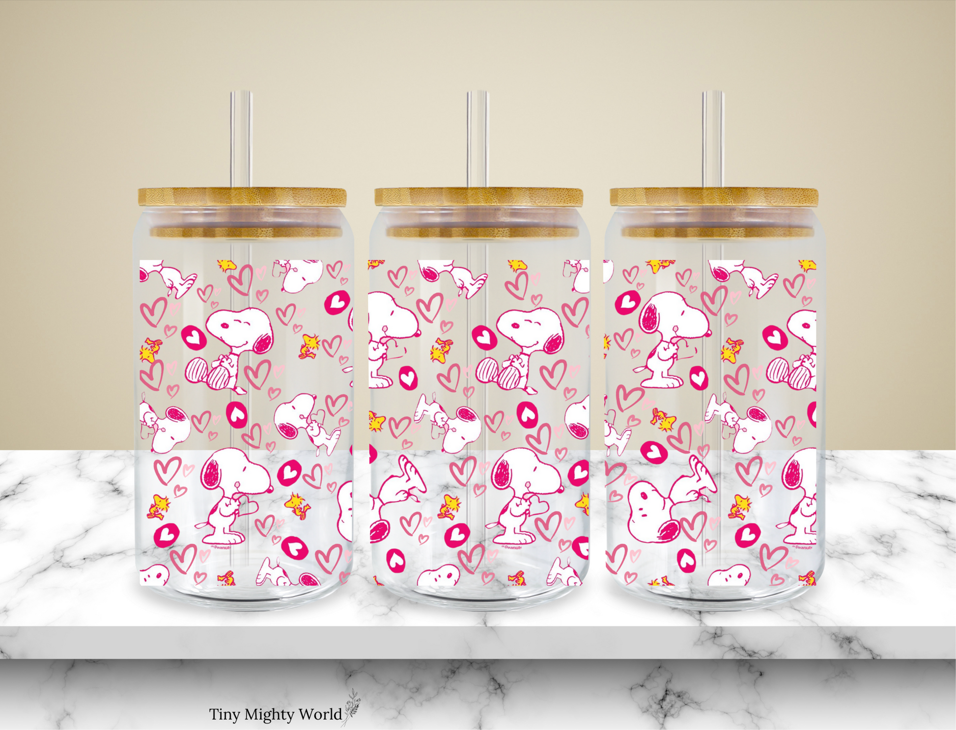 UV DTF Decal or Glass Cup – 16oz Cup or Transfer Sheet Option - Dog Heart Pink