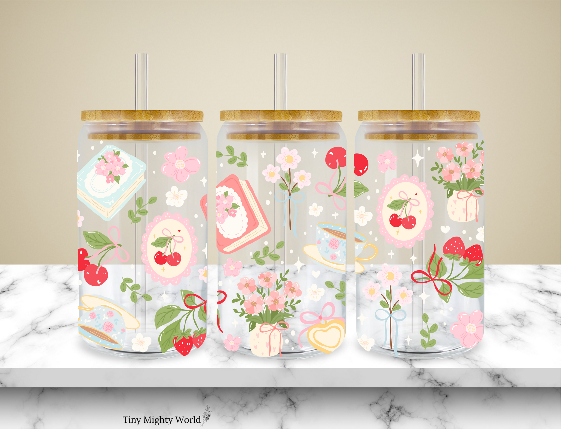 UV DTF Decal or Glass Cup – 16oz Cup or Transfer Sheet Option - Cherry and books
