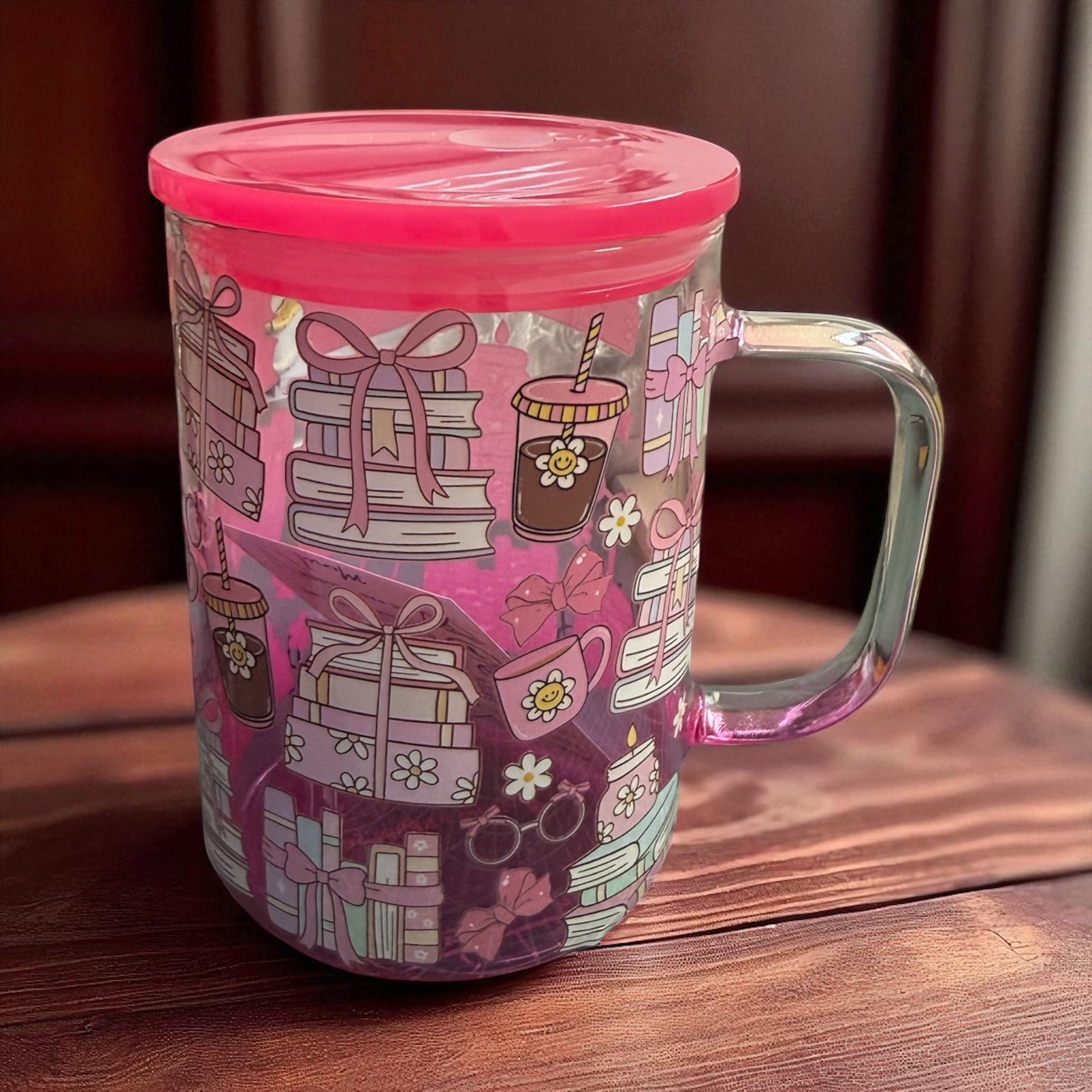 Iced Coffee Bookish Coffee Book Lover - 16 oz Glass Mug with Handle & Plastic Lid for Straw – Reusable Drinking Cup - UVDTF Stickers