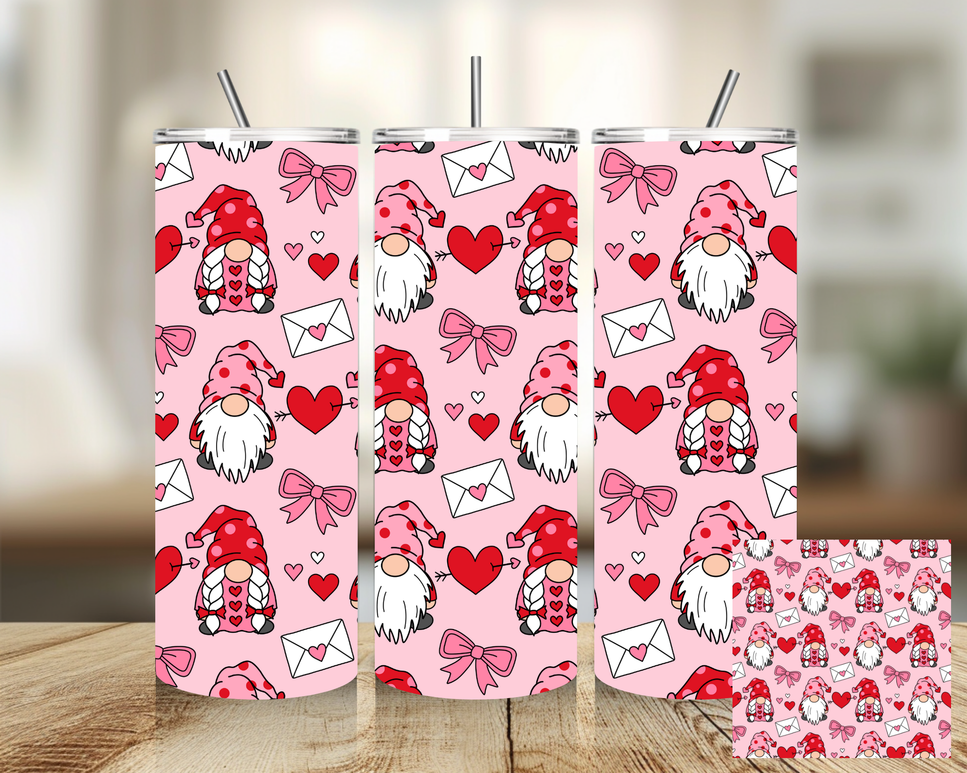 Tumbler 20 oz - Valentines Heart Gnomes Tumbler - Insulated Stainless Steel