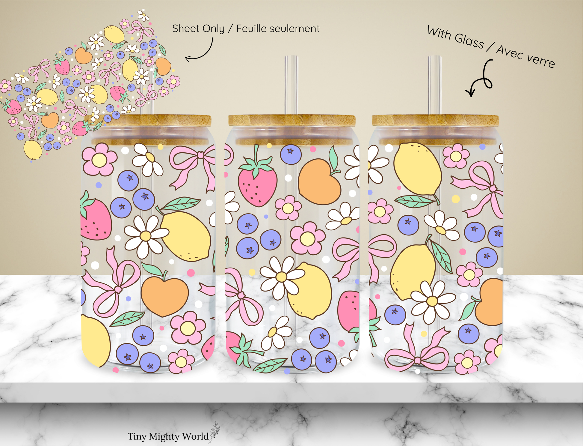 UV DTF Decal or Glass Cup – 16oz Cup or Transfer Sheet Option - Fruity Summer