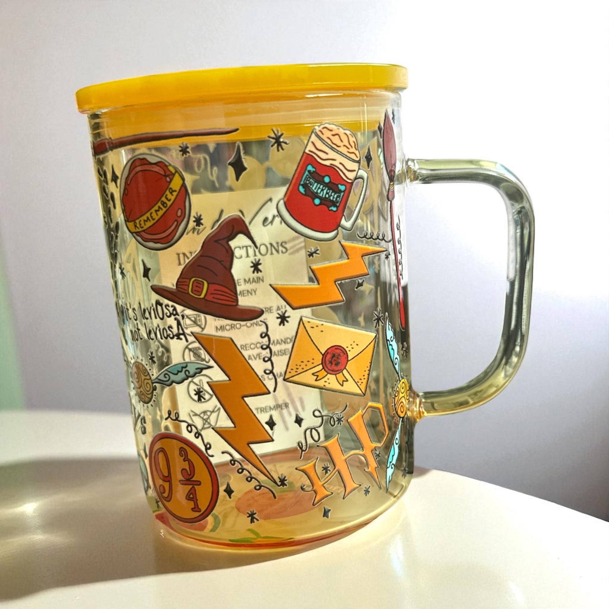 Witchy Sorcery - 16 oz Glass Mug with Handle & Plastic Lid for Straw – Reusable Drinking Cup - UVDTF Stickers